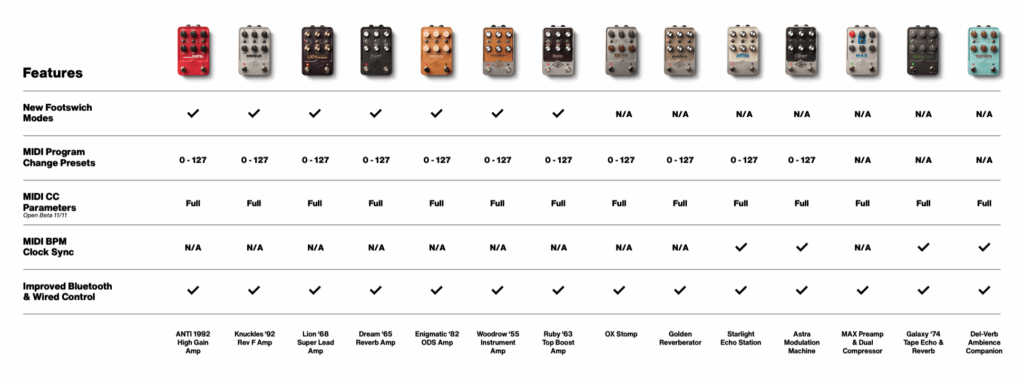 La actualización UAFX 2.0 está disponible para los siguientes pedales: