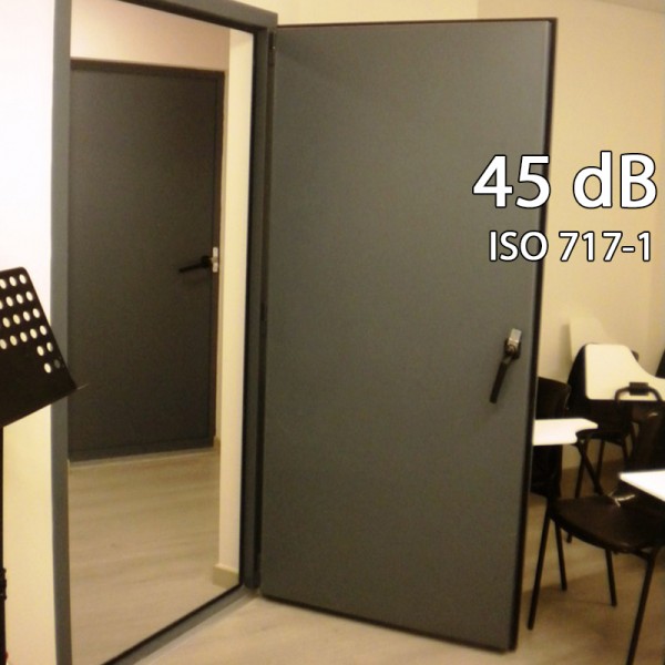 Mas Puerta Acústica 44dB es una puerta diseñada para bloquear el ruido de forma efectiva y confiable. Está construida con una chapa de acero de 1,5 mm de grosor, con cierre normalizado de alta presión. Viene provista de marco en todo su perímetro, con doble burlete de estanqueidad, y rellena de distintos materiales aislantes y absorbentes.